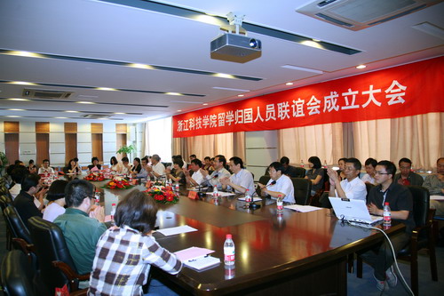 6月3日,浙江科技学院留学归国人员联谊会成立大会举行,浙江省侨联主席吴晶、副主席张维仁、浙江科技学院党委副书记胡浙平、副校长吕进出席会议。