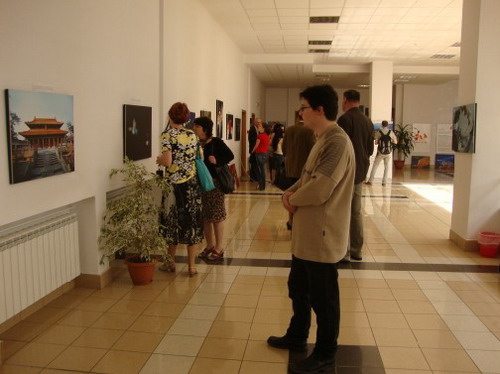 孔子学院的工作人员热情地为参观者进行了讲解。 正在克鲁日大学进行学术交流的法、德教授和乌干达、伊朗、韩国、摩尔多瓦共和国等国留学生也兴致勃勃地参观了图片展,并在图片前合影留念。生动的图片使得参观者驻足停留。大家为中国的迅猛发展而惊叹,为美丽的自然山水惊叹,为精美的艺术感叹。此次图片展将持续两周,克鲁日NCN电视台对图片展进行了报道。