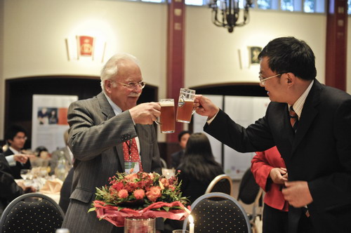 在招待晚宴上发表的感谢辞中,校长杜卫对格劳伯纳教授在我校所做的工作给予了高度评价,并代表我校一万五千余名师生对格劳伯纳教授所做的贡献表示衷心感谢,同时热情邀请他有机会再次回到曾经付出大量汗水并辛勤工作过的浙江科技学院,看一看美丽的新校园和当年的老同事。格劳伯纳教授在答谢辞中充满感情地回顾了杭州度过的美好时光,对学校取得的快速发展表达了由衷的喜悦和欣慰。论坛大会近200名与会代表见证了这一感人场面。