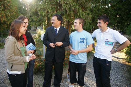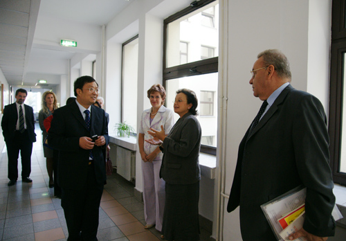9月21日,校长杜卫率领的我校代表团访问巴比什-波雅依大学。罗马尼亚著名汉学家、前驻华大使罗明先生及夫人和该校领导陪同代表参观考察学校。