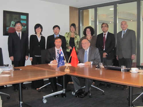 图为考察团在澳期间与斯文本科技大学签署合作备忘录
