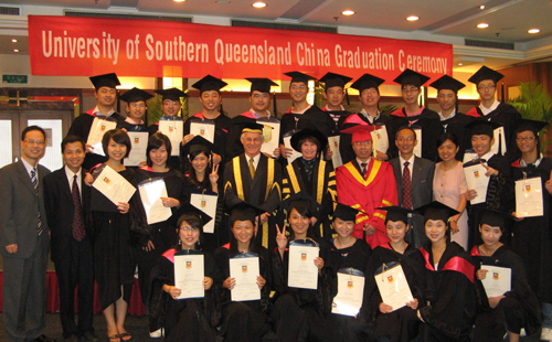 9月24日,澳大利亚南昆士兰大学在杭州举行中国USQ项目2008届毕业典礼和学位授予仪式。我校首届获得南昆士兰大学学位的“中澳班”学生参加仪式。副校长赵东福、信息学院、国际处等部门负责人应邀出席。