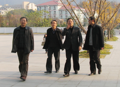 图1:陈加元(右二)、刘希平(左二)在徐志平(右一)、杜卫(左一)陪同下视察校园