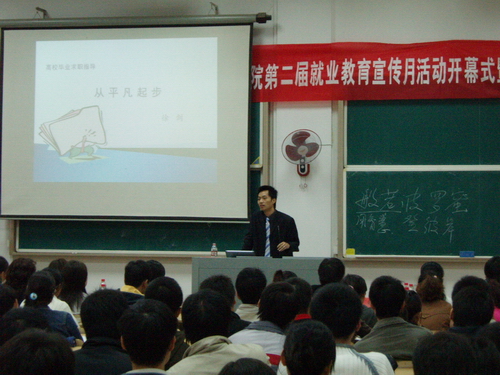 开幕式结束后,时代光华管理培训学院、香港光华管理学院高级讲师徐剑老师带来了首场报告“就业——人生旅途的新起点”,他指出:任何一个人都渴望自己能成功,但每一个成功者都是从平凡起步!希望每位同学能正确认识自我、树立自信、规划自己的职业生涯和人生道路。