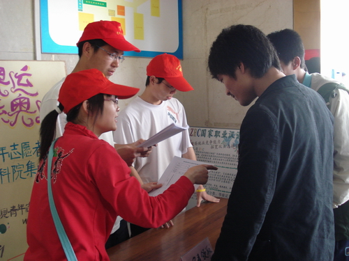 近日,2008年奥运青年志愿者浙科院集中报名活动火热进行。校青年志愿者协会积极响应杭州市青年志愿者协会号召,围绕奥运展开一系列相关活动。