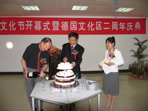 4月15日晚,“魅力德国——2007年德国文化节”开幕式暨德国文化区两周年庆典活动隆重举行。校长杜卫、校党委副书记陈浩出席仪式。来自德国不伦瑞克/沃芬比特尔应用科学大学、肯普滕应用科学大学、纽伦堡应用科学大学、奥登堡/东弗里斯兰/威廉港应用科学大学、德累斯顿技术经济大学、柏林工业大学、德国驻沪总领馆的代表们参加了仪式。