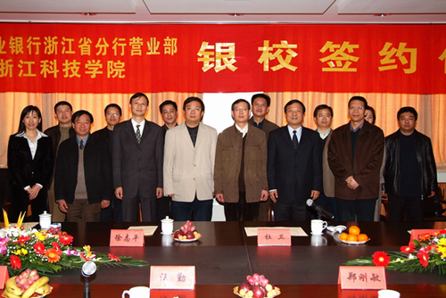 3月21日,我校与中国农业银行浙江省分行营业部签订银校合作协议。校党委书记徐志平,校长杜卫,校党委副书记胡浙平,副校长陈根芳,中国农业银行浙江省分行营业部党委书记、总经理汪勤,信贷管理部总经理郑刚敏,公司业务部总经理王火,个人业务部副总经理黄芳等出席签约仪式。仪式由陈根芳主持。