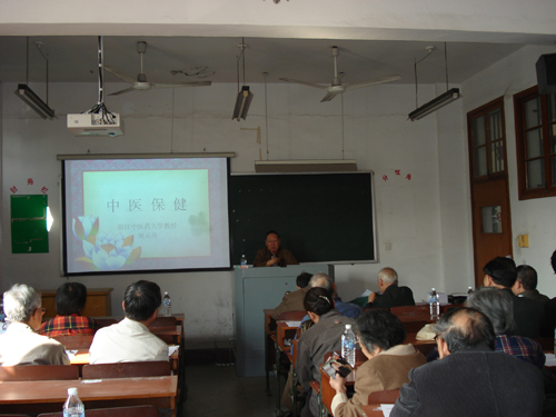 在冬季来临之时,为了增加离退休教工日常健康保健知识,学校聘请了浙江中医药大学硕士生导师刘元亮教授给老同志介绍了日常生活中的一些中医保健知识。讲座结束后,老同志们又向刘元亮教授就高血压等常见病的预防与治疗知识进行了咨询。