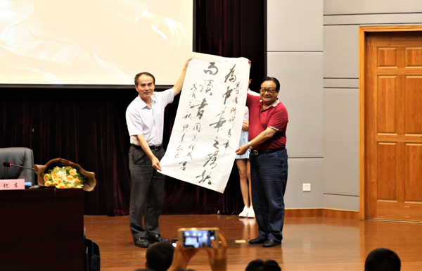 9月14日,周恩来总理秘书、武警指挥学院原副院长纪东将军做客黄浦江源大讲堂,为我校师生作题为“弘扬周总理精神风范 以初心和使命引领未来”报告。会前,校党委书记龚建立、校党委副书记赵东福会见纪东,向他介绍学校的发展概况。校长叶高翔、校党委副书记赵东福出席报告会。报告会前,纪东挥毫书写周总理箴言“为中华之崛起而读书”等3幅作品赠与我校。