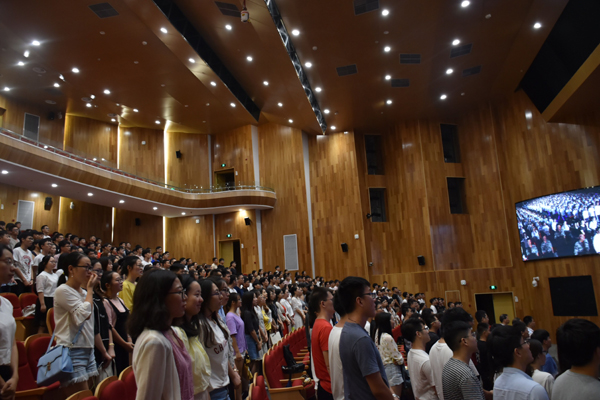 相约最美浙科,相约最美青春。9月19日晚,来自祖国各地和20多个国家地区的新生齐聚安吉校区,举行2018级新生开学典礼。校党委书记龚建立、校长叶高翔等学校领导出席。校中德合作委员会主任阿西姆•利兹教授、校友代表、家长代表也受邀参加。典礼由校党委副书记赵东福和英语161班周振男同学共同主持,通过视频直播,小和山安吉两校区新生共同见证。