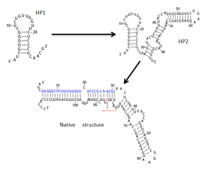 A.coli SRP RNA折叠路径                 HIV-1 TAR RNA折叠路径