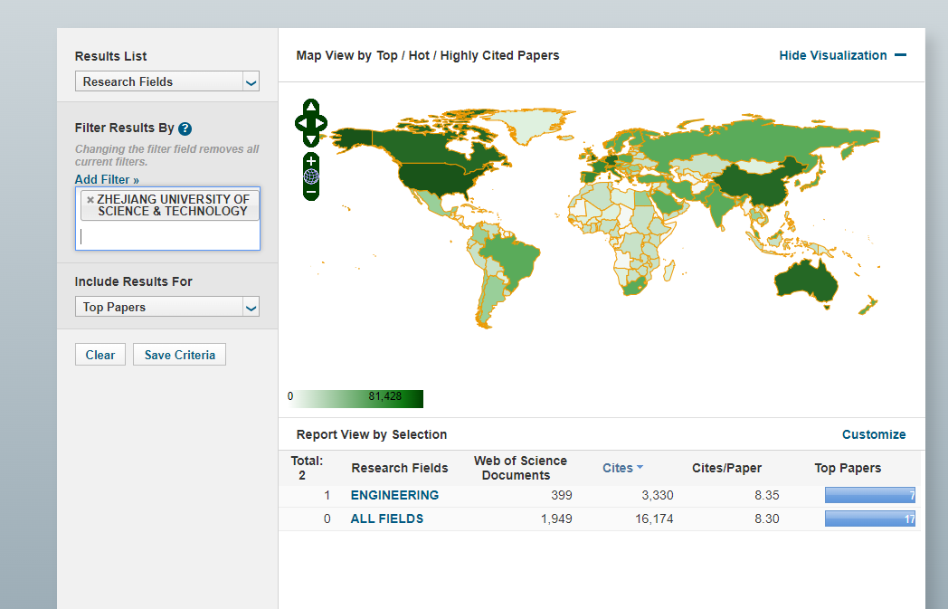 据统计,在本次ESI数据统计区间内,学校工程学总计发表论文399篇,总引用次数为3330,篇均引用8.35次。