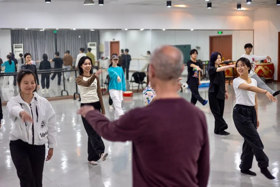 讲座之后,Thatcher教授前往西和舞蹈排练厅,举行即兴舞蹈工作坊,亲身示范了相关舞蹈动作,在他的带领之下,到场同学都积极参与到舞蹈动作的练习当中,很多人完成了自己的舞蹈“初体验”。(人文学院  学生记者 蓝欢/文  李乾诚/摄)