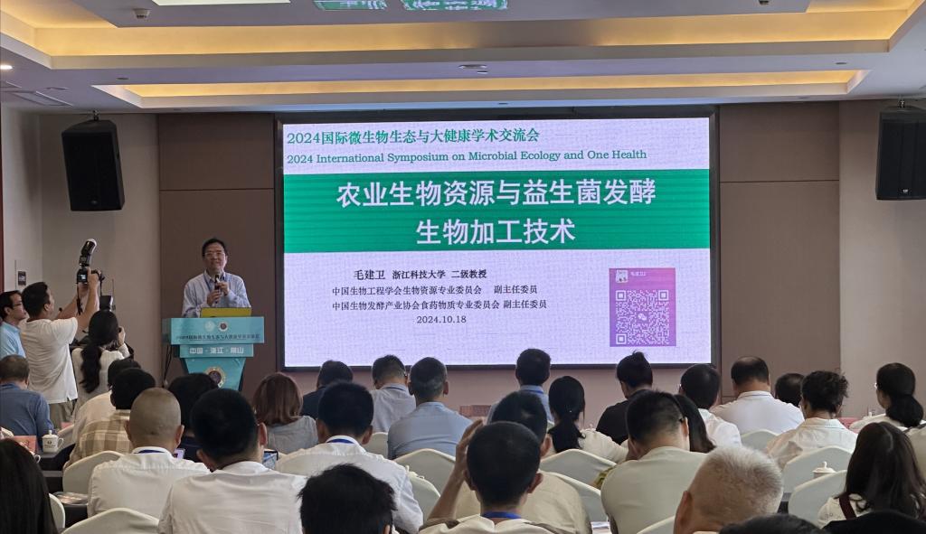 10月18日-19日,“2024国际微生物生态与大健康学术交流会”在浙江常山举行,浙江省农业生物资源生化制造协同创新中心主任毛建卫教授带队参会。